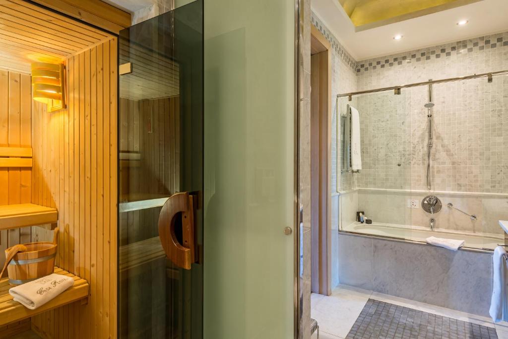 Las habitaciones combinan elegancia clásica y confort contemporáneo: aire acondicionado, TV por satélite y minibar se integran con materiales nobles y detalles cuidados. Los baños privados, con albornoz, zapatillas y secador, refuerzan esa sensación de refugio urbano; algunas categorías incorporan bañera de hidromasaje para una experiencia aún más exclusiva.