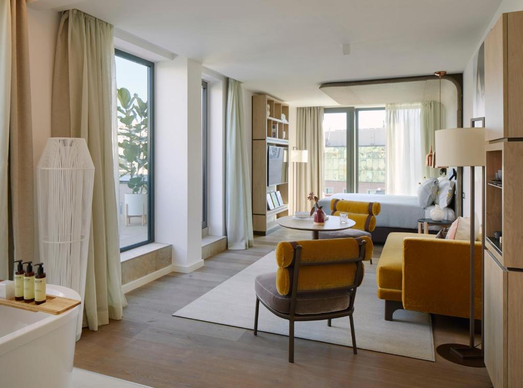 Las clases de yoga aportan un plus de equilibrio a la experiencia, mientras que el bar y la cafetería invitan a pausar el ritmo entre visitas y compras. Desde esta ubicación privilegiada, a escasa distancia del Teatro Tívoli y del Palau de la Música Catalana, caminamos fácilmente a algunos de los iconos culturales de Barcelona. El Aeropuerto de Barcelona-El Prat se sitúa a unos 13 km, manteniendo el hotel estratégicamente conectado sin renunciar a la calma del centro.