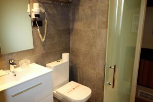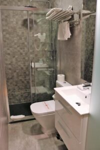 Las habitaciones del Hostal Hispano-Argentino están equipadas con aire acondicionado y calefacción, minibar y televisión con canales internacionales, pensadas para regresar tras la jornada con todo a mano. El baño privado, con secador de pelo, facilita una rutina cómoda y eficiente.