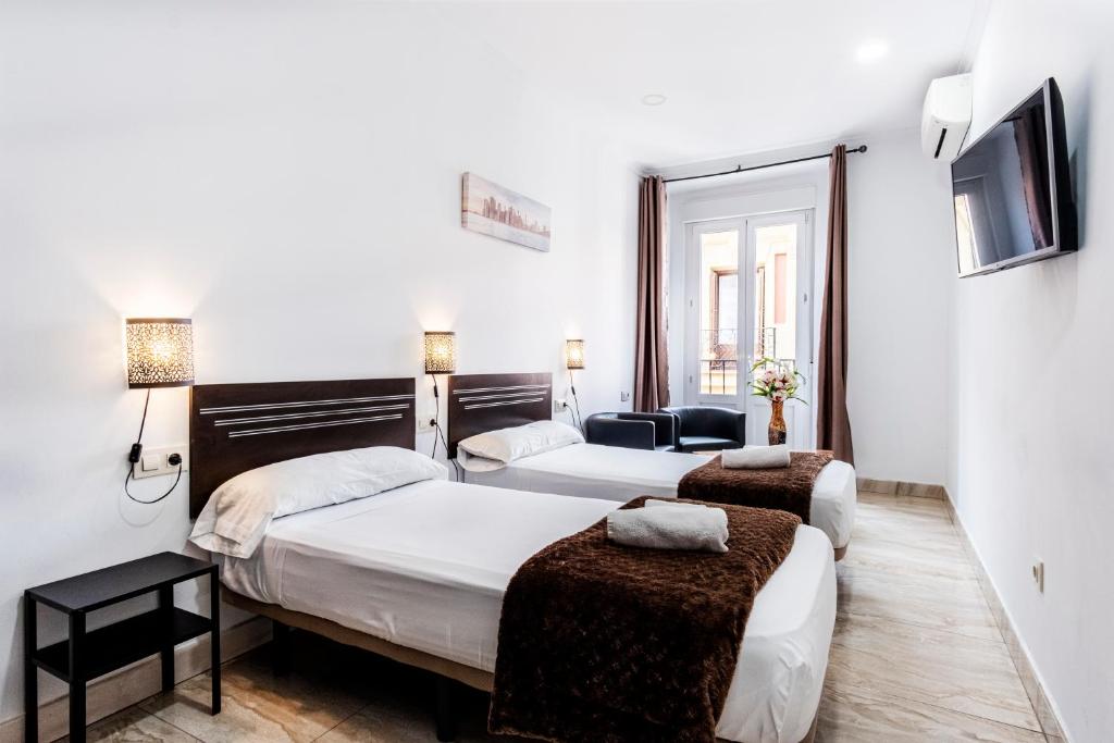 Hostal funcional junto a Puerta del Sol y Plaza Mayor, con habitaciones con aire acondicionado, baño privado, WiFi gratuita, recepción 24 h y consigna de equipaje.
