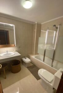 Este apartamento consta de 3 dormitorios independientes, 2 baños y una sala de estar.