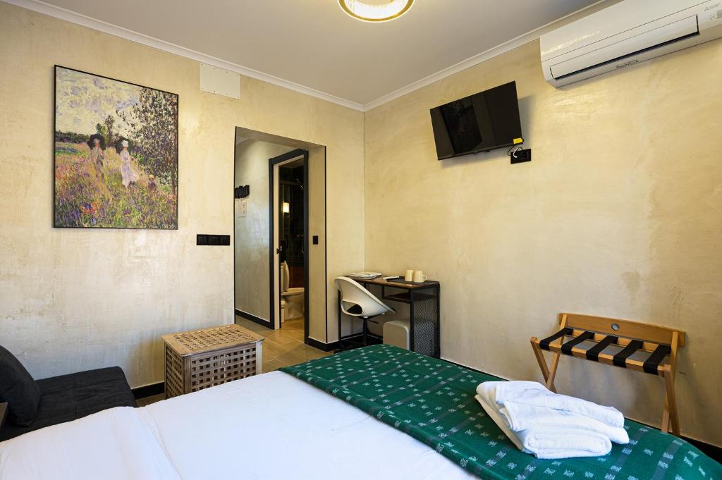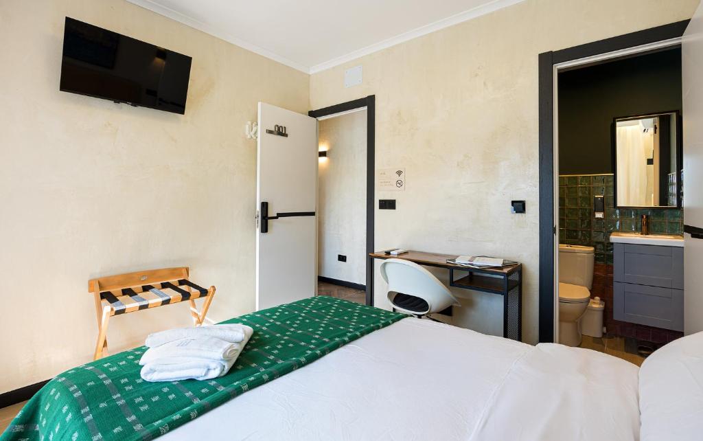 La pequeña cocina con nevera, microondas y tetera/cafetera facilita desayunos tranquilos o cenas ligeras sin salir del alojamiento, manteniendo la flexibilidad que buscamos en una escapada urbana. La TV completa la propuesta para momentos de descanso.