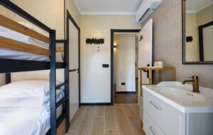 Cada apartamento está equipado para una experiencia independiente: baño privado con artículos de aseo gratuitos, ducha y secador de pelo, además de zapatillas para un plus de confort. La zona de estar incorpora sofá cama, ideal para familias o grupos reducidos.