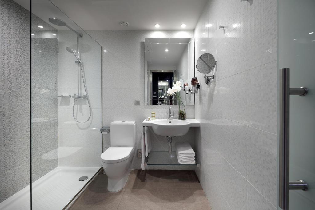 Las habitaciones, amplias y modernas, mantienen una decoración contemporánea pensada para viajeros que valoran tanto el diseño como la funcionalidad. La integración de materiales nobles y detalles decorativos sobrios crea una sensación de refugio urbano en plena ciudad, ideal para parejas y viajeros que buscan distinción sin estridencias.