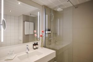 Sumérgete en la comodidad de nuestras habitaciones, todas equipadas con aire acondicionado, conexión WiFi gratuita y baño privado. Disfruta de entretenimiento con la TV de pantalla plana con canales vía satélite y guarda tus objetos de valor en la caja fuerte. Cada detalle está pensado para tu bienestar, desde la ropa de cama de alta calidad hasta las toallas suaves.