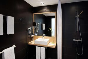 Cada habitación, diseñada para tu máximo confort, cuenta con aire acondicionado, wifi gratuito y baño privado. Relájate y disfruta de tus programas favoritos en la TV de pantalla plana con canales por cable, o guarda tus objetos de valor en la caja fuerte. Nuestro servicio de habitaciones, disponible las 24 horas, y la recepción siempre atenta a tus necesidades aseguran una estancia sin preocupaciones.