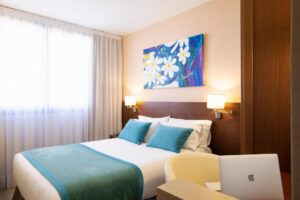 Descubre el Hotel & Spa Real Ciudad De Zaragoza, un oasis de confort y conveniencia. Disfruta de aparcamiento gratuito, gimnasio, y un spa rejuvenecedor. Habitaciones equipadas con todas las comodidades modernas y un restaurante a la carta. Ideal para una estancia relajante y conectada con la ciudad.
