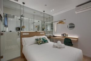 En Chamberí, el Hotel The Match ofrece habitaciones con TV inteligente, WiFi gratuita y escritorio. Algunas disponen de balcón y baño privado. Ubicación estratégica cerca del Bernabéu, Paseo de la Castellana y Gran Vía, ideal para parejas y viajeros urbanos exigentes.