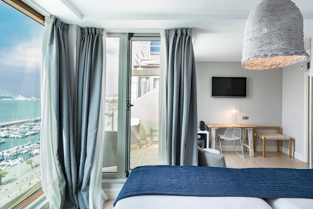 Las habitaciones del hotel están diseñadas para garantizar el máximo descanso. Todas están perfectamente insonorizadas y climatizadas, y presentan una decoración luminosa y actual. Disfruta de comodidades como televisión vía satélite y un elegante baño alicatado. Para una estancia inolvidable, algunas habitaciones ofrecen vistas directas al puerto deportivo y al mar, un espectáculo que te cautivará cada mañana.