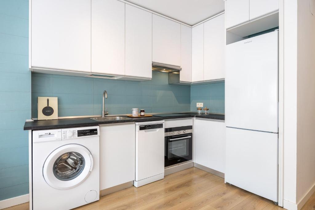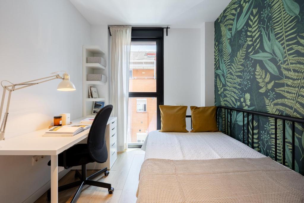 Appartements modernes à proximité d'IFEMA et de l'aéroport, avec Wi-Fi gratuit, parking privé, cuisine entièrement équipée, coin salon et salle de bains privative avec commodités.