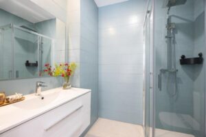 La salle de bain privée, avec douche, articles de toilette gratuits et sèche-cheveux, complète une expérience pratique et soignée, pensée pour maintenir notre routine de voyage avec le maximum de confort et un point d'excellence discrète.