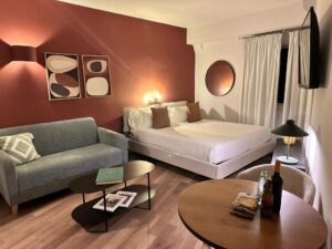 Les appartements disposent de la climatisation et d'une kitchenette équipée d'un réfrigérateur, d'un micro-ondes et d'ustensiles, parfaite pour organiser des petits-déjeuners tranquilles ou des dîners légers après avoir exploré Madrid. La salle de bain privée avec baignoire et douche, sèche-cheveux et articles de toilette gratuits apporte du confort à chaque séjour.
