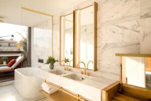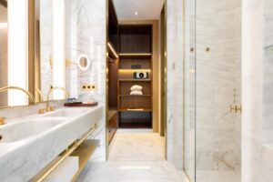 L'Hôtel Almanac occupe un bâtiment de style traditionnel qui cache un univers de charme silencieux. Nous sommes accueillis par des intérieurs chaleureux et contemporains, où la lumière douce et les finitions en marbre et en bois créent une sensation de calme immédiat.