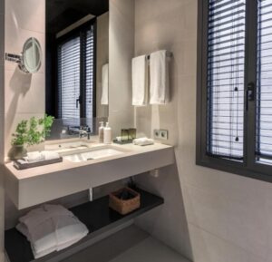 Nous sommes accueillis par une atmosphère d'élégance silencieuse, chaleureuse et contemporaine, pensée pour les voyageurs qui apprécient la discrétion plus que l'excès. Les chambres, toutes climatisées, avec minibar et coffre-fort, se présentent comme un refuge intime : linge de lit impeccable, serviettes moelleuses et une esthétique soignée dans les moindres détails. Certaines chambres disposent d'un balcon et d'une vue sur la ville, un privilège lorsque le soir tombe sur l'Eixample.