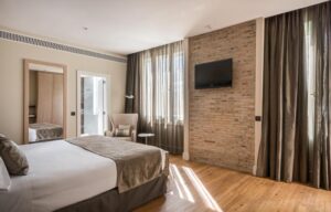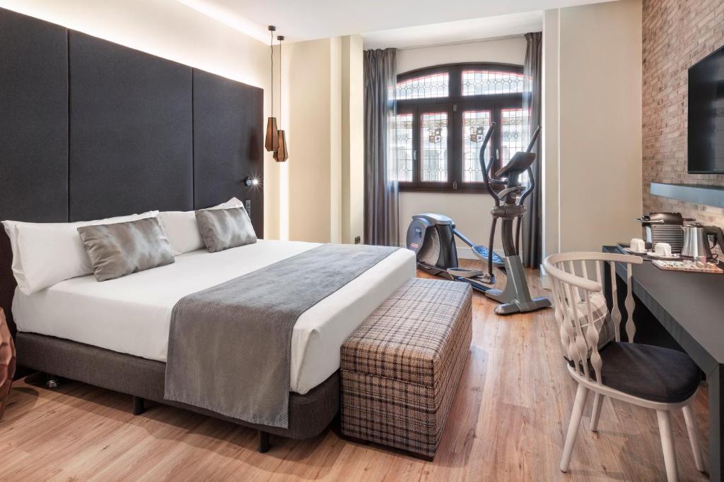 Hôtel 4* situé directement sur la Gran Vía avec terrasse et piscine, chambres avec Chromecast, Wi-Fi gratuit, petite salle de sport, petit-déjeuner buffet, restaurant méditerranéen et international et bar à cocktails, à quelques pas du Triangle de l'Art.