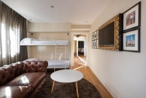 De là, les grands musées du Triangle de l'Art —Prado, Thyssen-Bornemisza et Reina Sofía— sont accessibles à pied en moins de 10 minutes, tandis que la gare d'Atocha et sa connexion AVE ouvrent la porte à d'autres villes espagnoles. La Gran Vía devient votre boulevard privé, avec des théâtres, des restaurants et des boutiques à quelques pas.