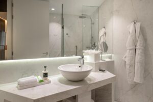 En franchissant le seuil, on perçoit une atmosphère soignée et intemporelle. Les 159 chambres et 16 suites ont été conçues avec une attention particulière aux détails, intégrant un mobilier personnalisé qui établit un dialogue entre l'esprit dynamique de Madrid et le confort sophistiqué attendu par les clients de FaceTraveler.