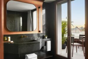 En franchissant son seuil, l'effervescence de la ville se dissout dans une atmosphère soignée et paisible. L'esthétique épurée de l'hôtel, cinq étoiles d'intemporalité, se ressent dans chaque recoin, depuis son centre de fitness qui invite au bien-être jusqu'aux chambres qui ont été conçues comme de véritables refuges. Les intérieurs misent sur la discrétion et le confort sophistiqué, avec des séjours qui offrent même des vues privilégiées sur la ville. Chaque détail, du bureau à la salle de bain privée avec baignoire ou douche, est pensé pour le voyageur qui valorise les matériaux nobles.