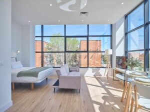 Paseo Suites Hôtel est un appart'hôtel contemporain aux lignes épurées, conçu pour ceux qui apprécient l'autonomie et l'efficacité à Madrid. Ses intérieurs privilégient la lumière naturelle et les espaces pratiques, créant un refuge confortable après une journée de réunions ou de visites culturelles.