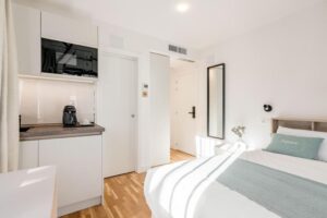 Moderna pensione vicino all'aeroporto e all'IFEMA, con camere climatizzate, bagno privato, TV, Wi-Fi gratuito e mini palestra. Ambiente non fumatori e ben collegato con Chamartín e il centro di Madrid.