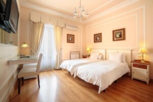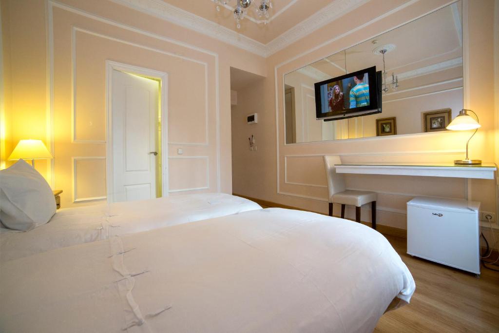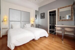 The rooms, styled in vivid tones atop wooden floors, create a cosy sanctuary after full days exploring Madrid. Air conditioning and heating ensure year-round comfort, while a flat-screen TV and complimentary Wi-Fi accompany your well-earned moments of downtime.