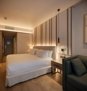 The hotel showcases a contemporary, serene aesthetic, with elegant rooms featuring wooden floors, a pillow menu and a keen attention to everyday comfort. Air conditioning, complimentary Wi-Fi and flat-screen TVs blend seamlessly into an environment that champions understated cosiness. Modern bathrooms, stocked with carefully curated amenities, complete a sense of well-being crafted for both business trips and cultural getaways.