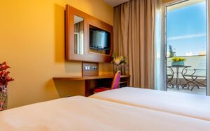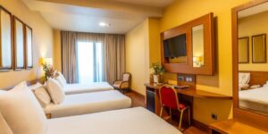 The rooms at Hotel Sterling are spacious and understated, featuring a private bathroom, air conditioning, TV and safe. Both the desk and sofa are perfect for work or relaxation, and the option to add extra beds makes them ideal for couples or small groups.