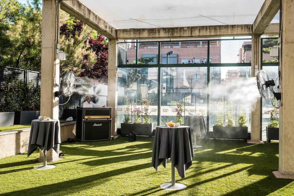 Contemporary hotel just 2 km from Barajas Airport, close to IFEMA and Cívitas Metropolitano. Designer rooms, a well-equipped gym, a paddle tennis court, a restaurant, a bar, a terrace and a buffet breakfast with complimentary coffee for early risers.