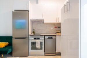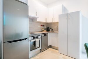 Every unit comes fully equipped to make you feel right at home: a kitchen with fridge and dishwasher, a living area with sofa bed and a dedicated workspace with desk. Complimentary Wi-Fi and air conditioning ensure comfort for both leisurely escapes and professional stays.