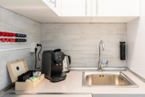 Our accommodation champions functional, contemporary comfort. Each space is laid out as a compact urban apartment, perfect for those who appreciate the independence of a private kitchen without compromising on essential services or a carefully curated ambience.