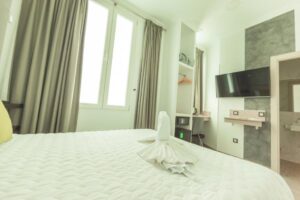 The bedding and towels are carefully chosen to provide comfort, while the private bathroom with shower and the flat-screen TV complete a functional and pleasant experience. There are no grand gestures, but a discreet distinction in the basics that really matter when prioritizing location and comfort.